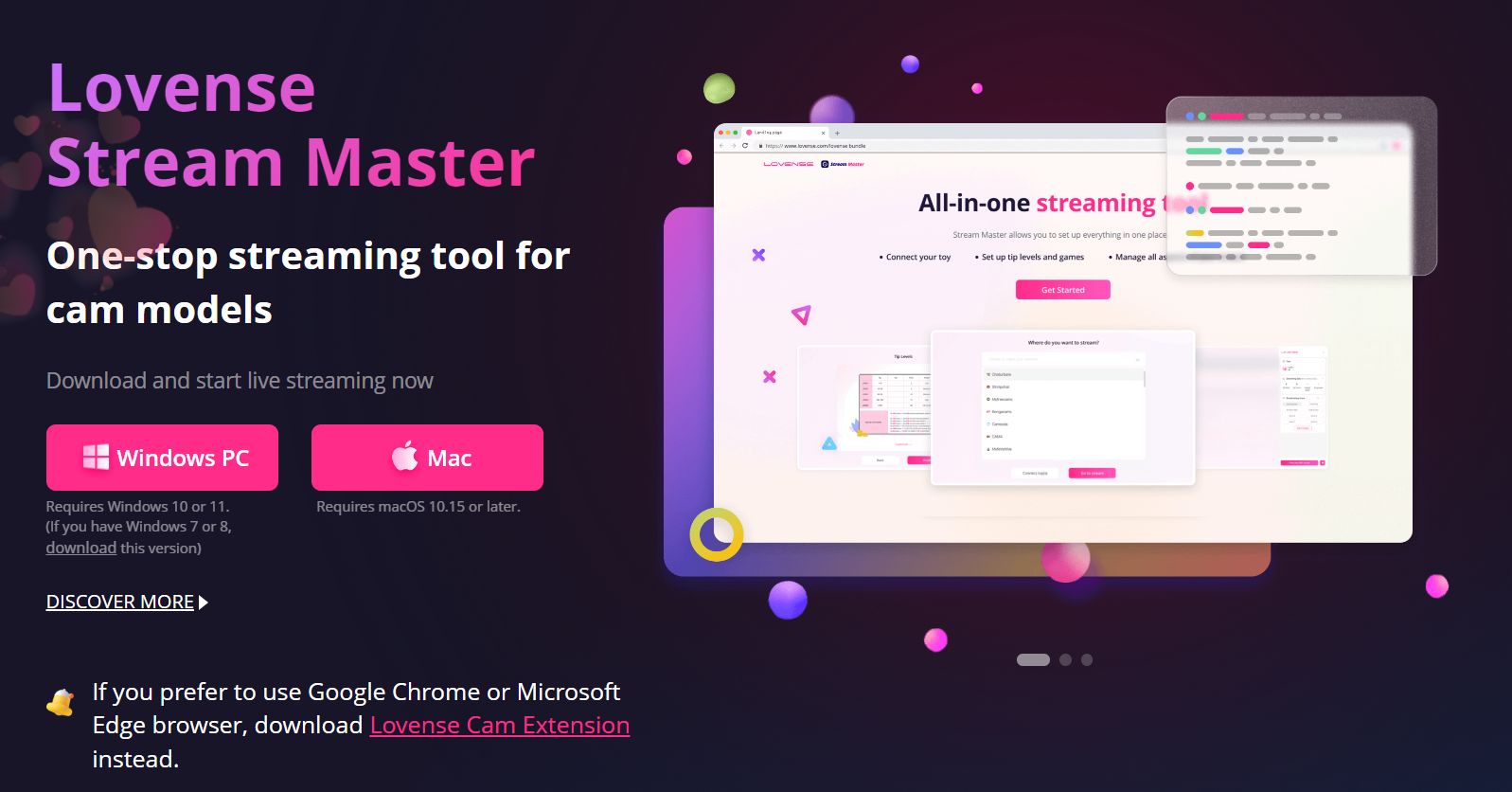 - Download and install the Lovense Connect application by selecting your computer's operating system (Windows or Mac) or by clicking on Lovense Cam Extension.